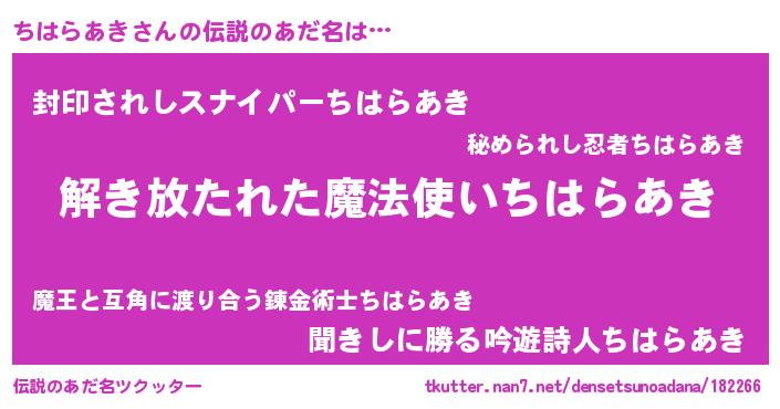 | 胡散臭い通販商品みたいなあだ名 | 『伝統あるサプリメント…その名も「ちはらあき」』 |