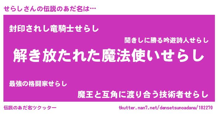 | 胡散臭い通販商品みたいなあだ名 | 『伝統あるサプリメント…その名も「せらし」』 |