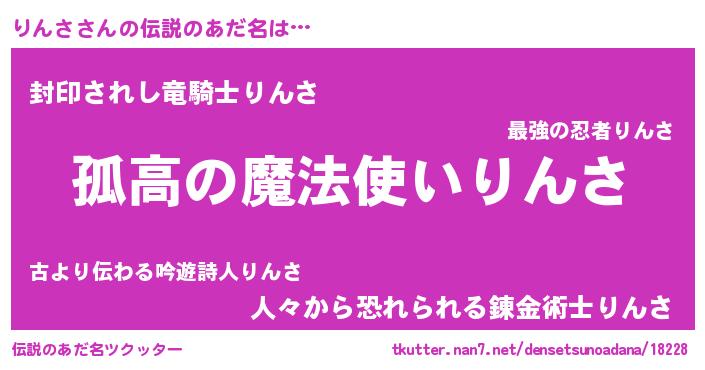 | 胡散臭い通販商品みたいなあだ名 | 『信頼と実績のサプリメント…その名も「りんさ」』 |