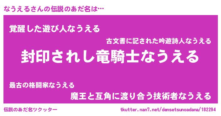 | ヒーロー風カッコイイあだ名 | 『スーパーナウエル』『幻影騎士ナウ』 |
