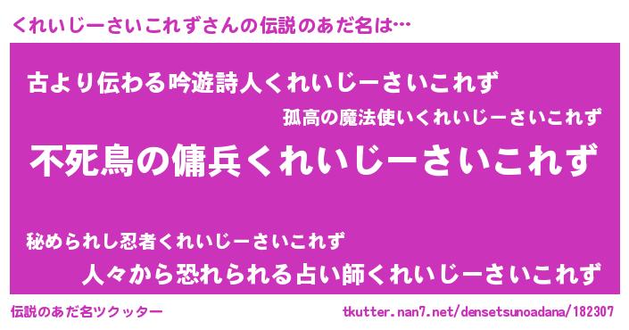 | 恥ずかしいあだ名 | 『プリティーくれいじーさいこれず』 |