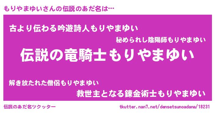| 欧米人風あだ名 | 『マイケルもりやまゆい』 |