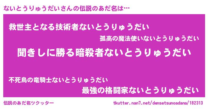 | 男性向けラノベタイトル風あだ名 | 『ないとうりゅうだいという概念が存在しない退屈な世界 』 |