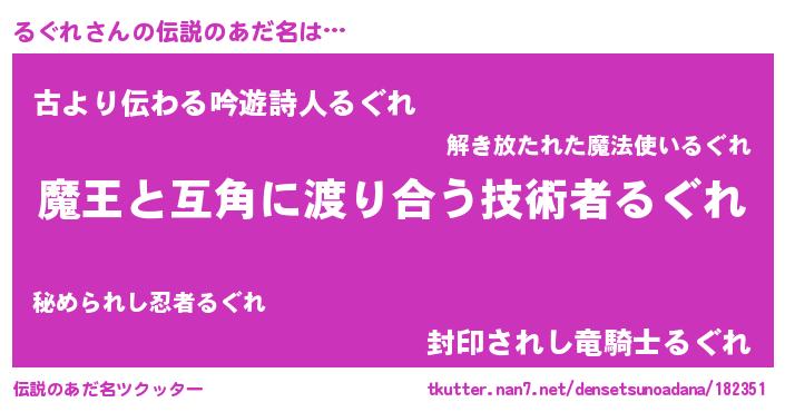 | ヒーロー風カッコイイあだ名 | 『友情の使者るぐれ』『ネオルグレ』 |