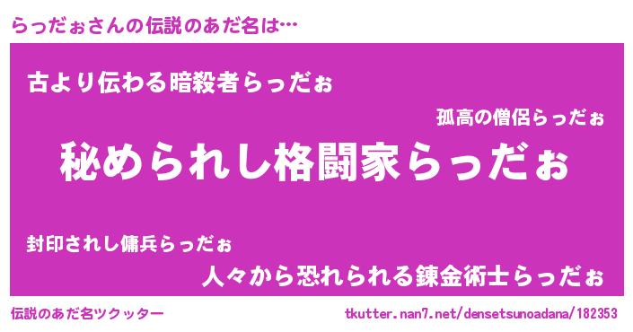| ヒーロー風カッコイイあだ名 | 『超時空戦士ラッダォ』『ネオラッダォ』 |