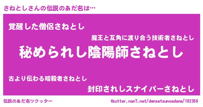 | 意味不明あだ名 | 『自称さねとし』『さねとしフォーエバー』 |