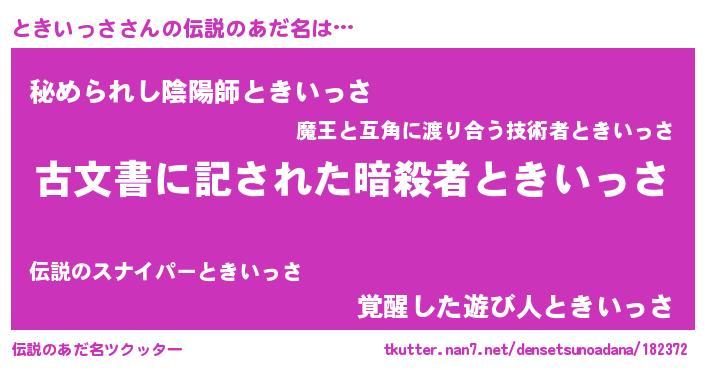 | 意味不明あだ名 | 『自称ときいっさ』『永久保存ときいっさ』 |