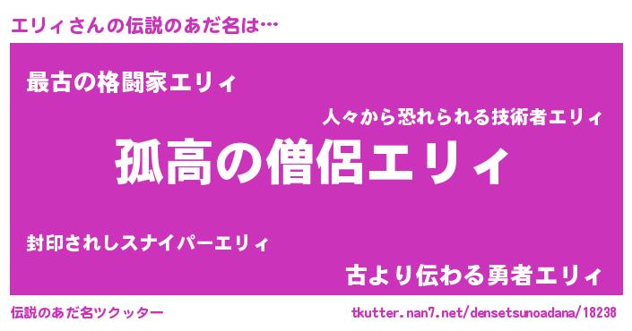 | 意味不明あだ名 | 『とにかく怪しいエリィ』『自称エリィ』 |