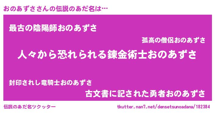 | 意味不明あだ名 | 『自称おのあずさ』『永久保存おのあずさ』 |