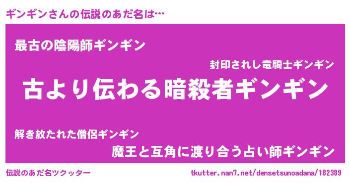 | ヒーロー風カッコイイあだ名 | 『ネオギンギン』『仮面ギンダー』 |