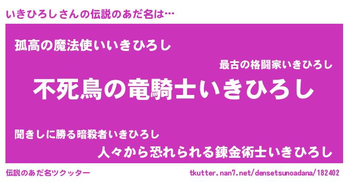 | ヒーロー風カッコイイあだ名 | 『スーパーイキヒロシ』『仮面イキダー』 |