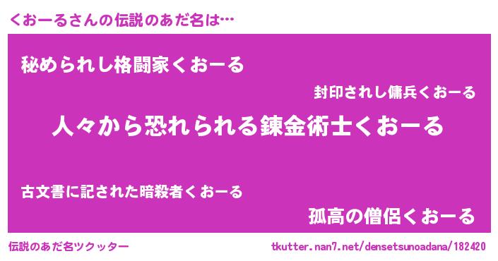 | ヒーロー風カッコイイあだ名 | 『正義の使者くおーる』『暗黒騎士クオ』 |