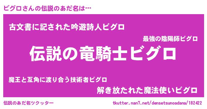 | ヘコむあだ名 | 『ビグにー』『ビグロ(遠い目)』 |