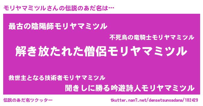 | ヒーロー風カッコイイあだ名 | 『魔戒騎士モリ』『ネオモリヤマミツル』 |