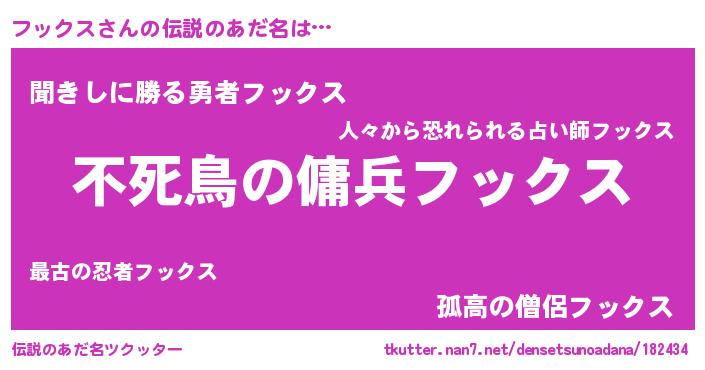 | ヘコむあだ名 | 『フッにゅー』『フックス(遠い目)』 |