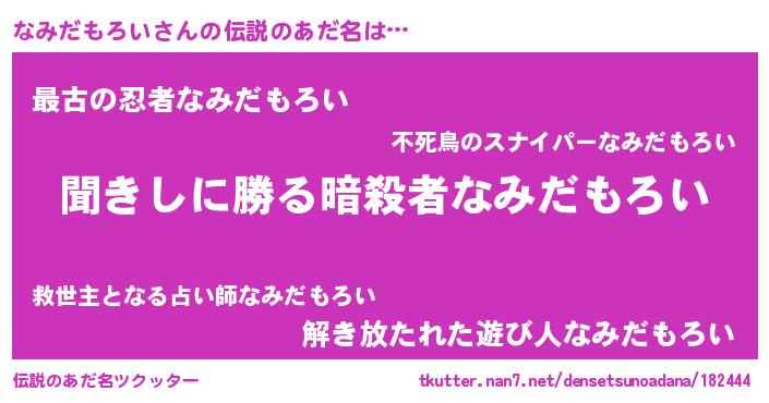 | 男性向けラノベタイトル風あだ名 | 『なみだもろいという概念が存在しない退屈な世界 』 |