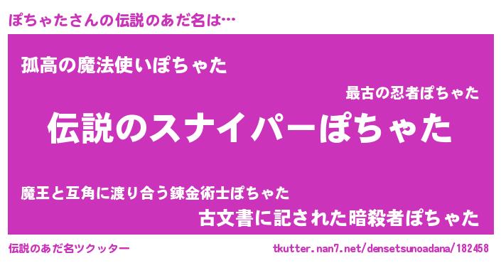 | 胡散臭い通販商品みたいなあだ名 | 『必ず成功する霊験あらたかなお札…その名も「ぽちゃた」』 |