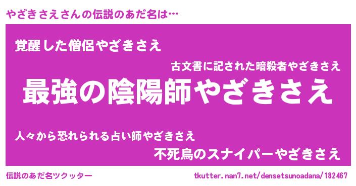 | ファンタジー風あだ名 | 『エターナルヤザキサエー』『ヤザフェル』 |