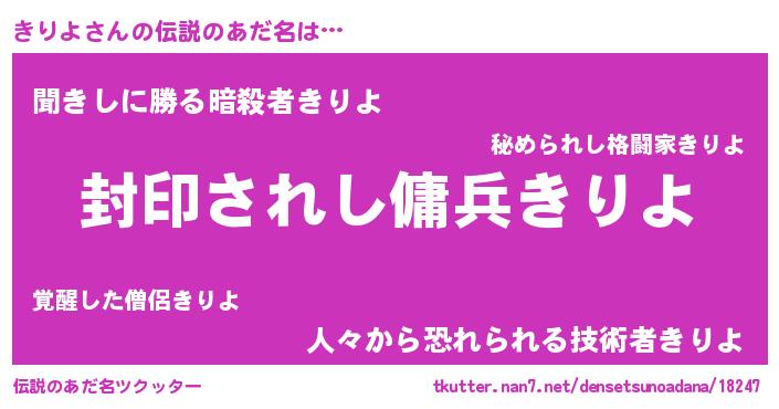 | 胡散臭い通販商品みたいなあだ名 | 『億万長者になれる水晶球…その名も「きりよ」』 |