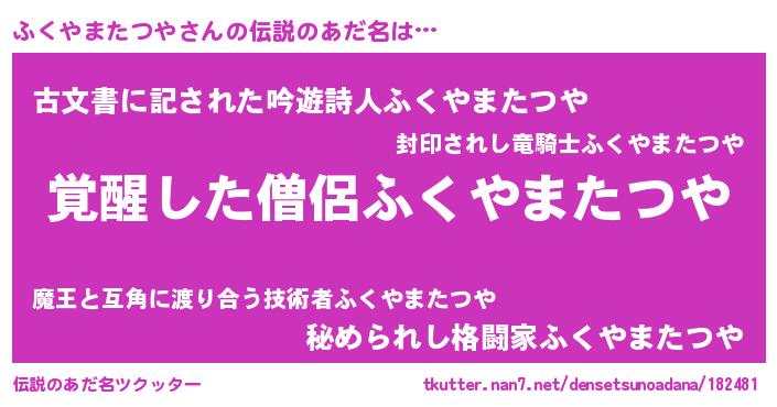 | 意味不明あだ名 | 『自称ふくやまたつや』 |