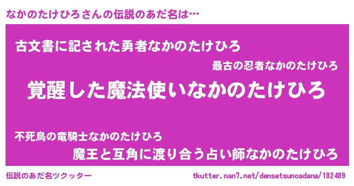 | 男性向けラノベタイトル風あだ名 | 『なかのたけひろの嫁は女の子じゃないと思った?』 |