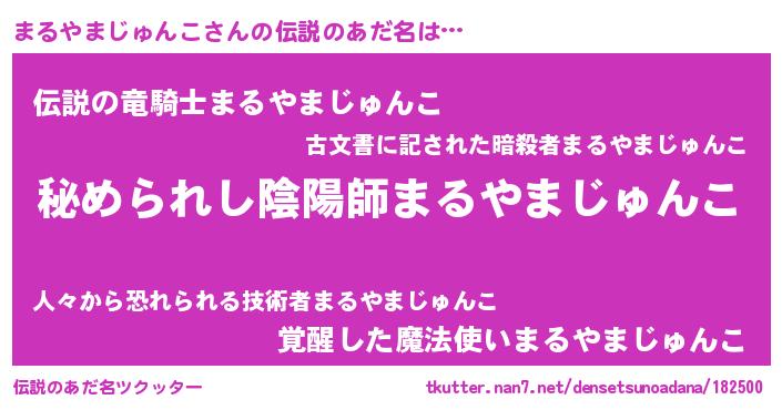 | 男性向けラノベタイトル風あだ名 | 『魔弾の王とまるやまじゅんこ』 |