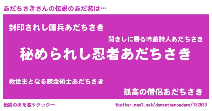 | 女子向けラノベタイトル風あだ名 | 『あだちさきの雑貨屋さん』 |