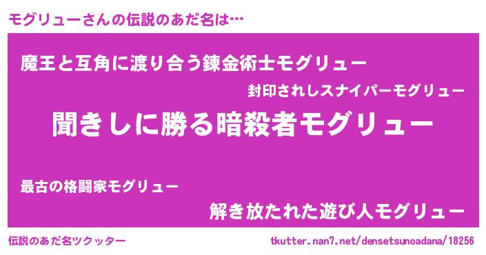 | ヘコむあだ名 | 『モグリュー(爆)』『モグっぺ』 |