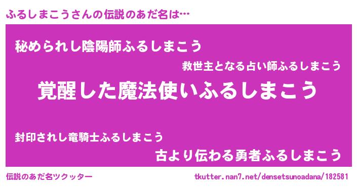 | 男性向けラノベタイトル風あだ名 | 『うちのふるしまこうが世界を掌握している!』 |