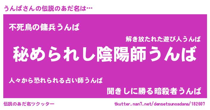 | 意味不明あだ名 | 『うんばフォーエバー』『自称うんば』 |
