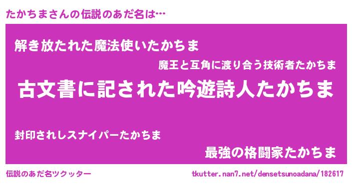 | 肩書あだ名 | 『たかちま先生』『たかちま大尉』 |