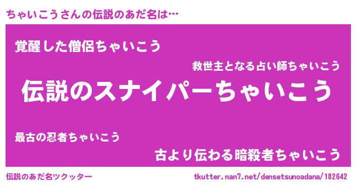 | 胡散臭い通販商品みたいなあだ名 | 『必ず成功する霊験あらたかなお札…その名も「ちゃいこう」』 |