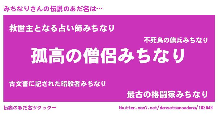 | ヒーロー風カッコイイあだ名 | 『魔戒騎士ミチ』『サイバー戦士ミチナリ』 |