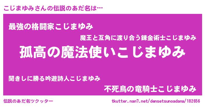 | 意味不明あだ名 | 『住所不定無職こじまゆみ(10歳)』 |