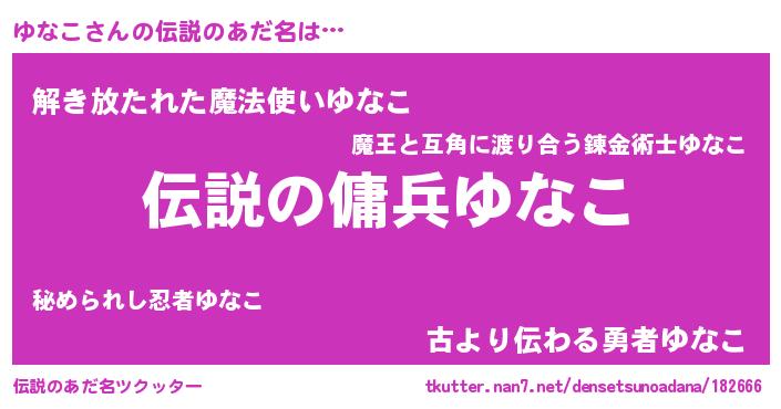 | ヒーロー風カッコイイあだ名 | 『スーパーユナコ』『魔戒騎士ユナ』 |