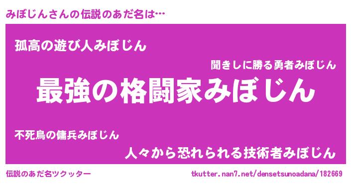 | ヒーロー風カッコイイあだ名 | 『仮面ミボダー』『究極戦士ミボジン』 |
