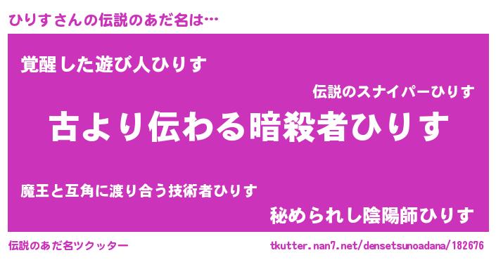 | 意味不明あだ名 | 『永久保存ひりす』『自称ひりす』 |