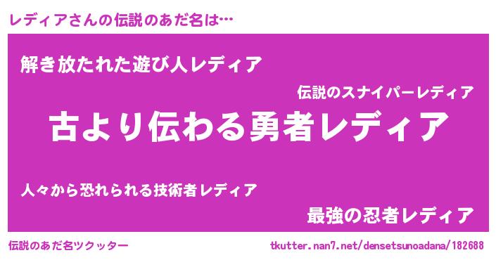 | ヒーロー風カッコイイあだ名 | 『仮面レデダー』『究極戦士レディア』 |