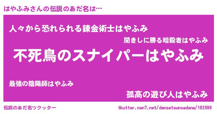 | 男性向けラノベタイトル風あだ名 | 『転生したらはやふみだった件』 |
