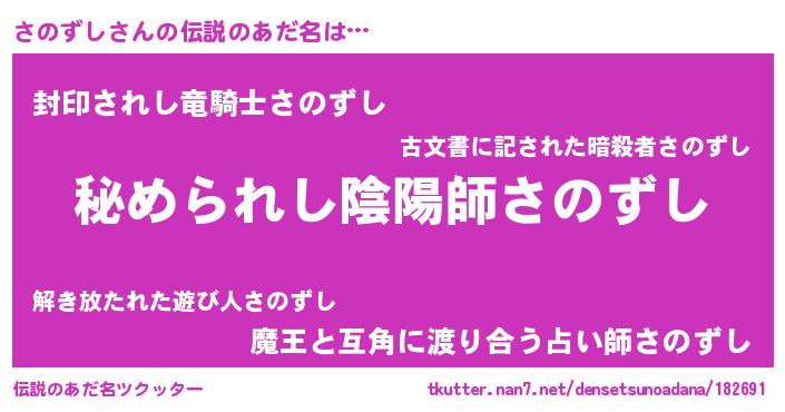 | 意味不明あだ名 | 『住所不定無職さのずし(74歳)』 |