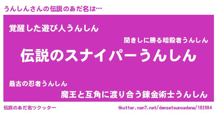 | 意味不明あだ名 | 『住所不定無職うんしん(93歳)』 |