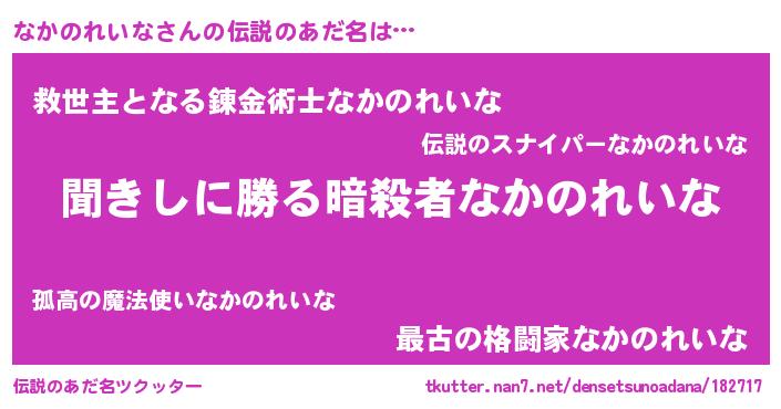 | 女子向けラノベタイトル風あだ名 | 『首の姫と首なしなかのれいな』 |