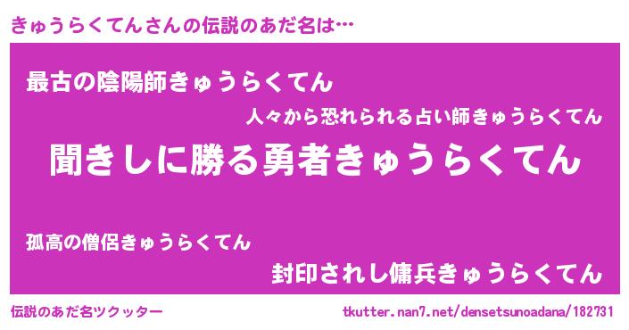 | ヒーロー風カッコイイあだ名 | 『ネオキュウラクテン』『仮面キュダー』 |