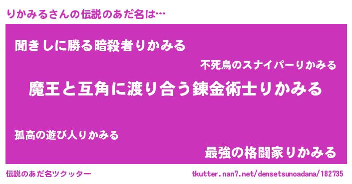 | 欧米人風あだ名 | 『りかみる・ステッグマイヤー』 |