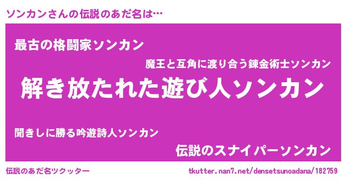 | ヒーロー風カッコイイあだ名 | 『幻影騎士ソン』『ウルトラソンカンマン』 |