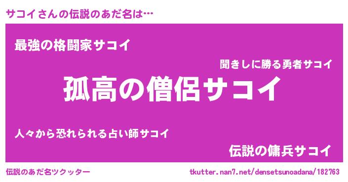 | ヒーロー風カッコイイあだ名 | 『黄金騎士サコ』『ウルトラサコイマン』 |