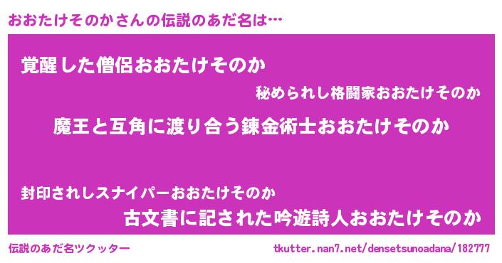 | 女子向けラノベタイトル風あだ名 | 『おおたけそのか恋絵巻』 |