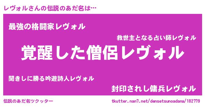 | 男性向けラノベタイトル風あだ名 | 『レヴォルの嫁は女の子じゃないと思った?』 |