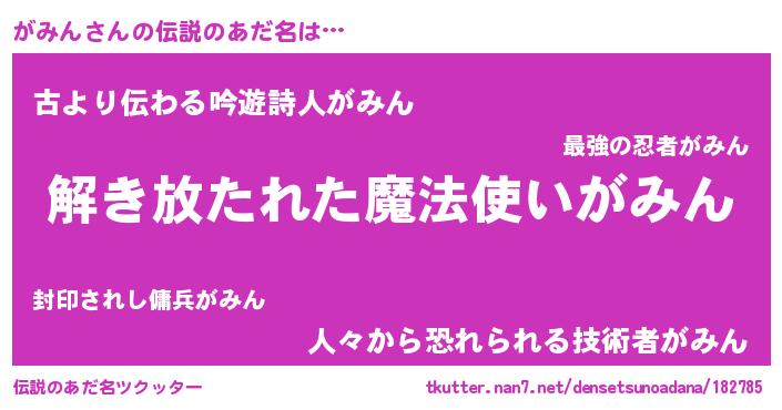 | ヒーロー風カッコイイあだ名 | 『魔戒騎士ガミ』『サイバー戦士ガミン』 |