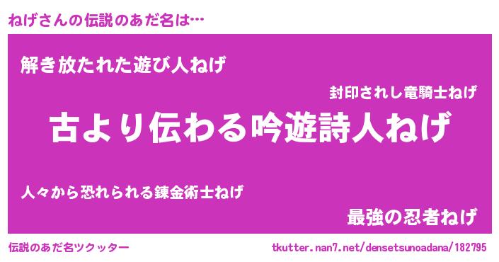 | 意味不明あだ名 | 『永久保存ねげ』『とにかく怪しいねげ』 |